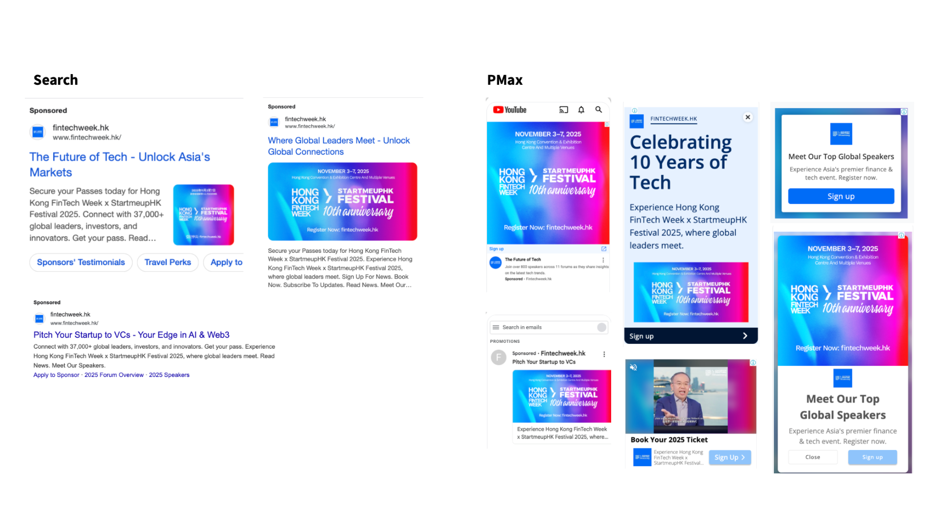 A dedicated branded search effort on Google proved highly efficient, securing 90 purchases at a CPP of HKD 58.69. This was fueled by users already showing strong brand awareness. The top keywords were all branded terms (e.g., “Fintech week” at CPA HKD 8.82 and the event acronym at CPA HKD 10.30). This indicated that many users first discovered the event through other channels (likely Meta or PR) before searching on Google to convert.